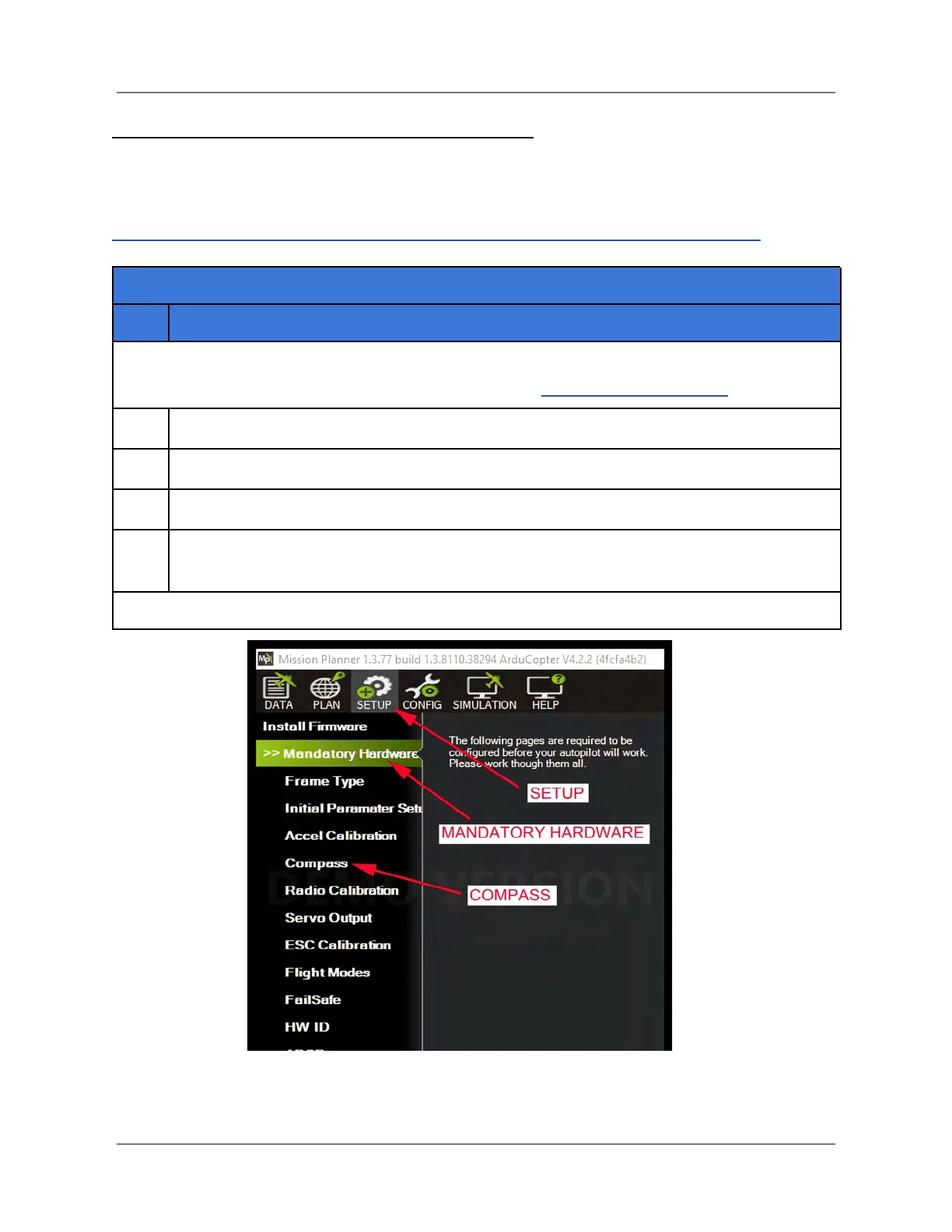 This section describes how to calibrate the aircraft’s internal compass in Mission Planner. For a