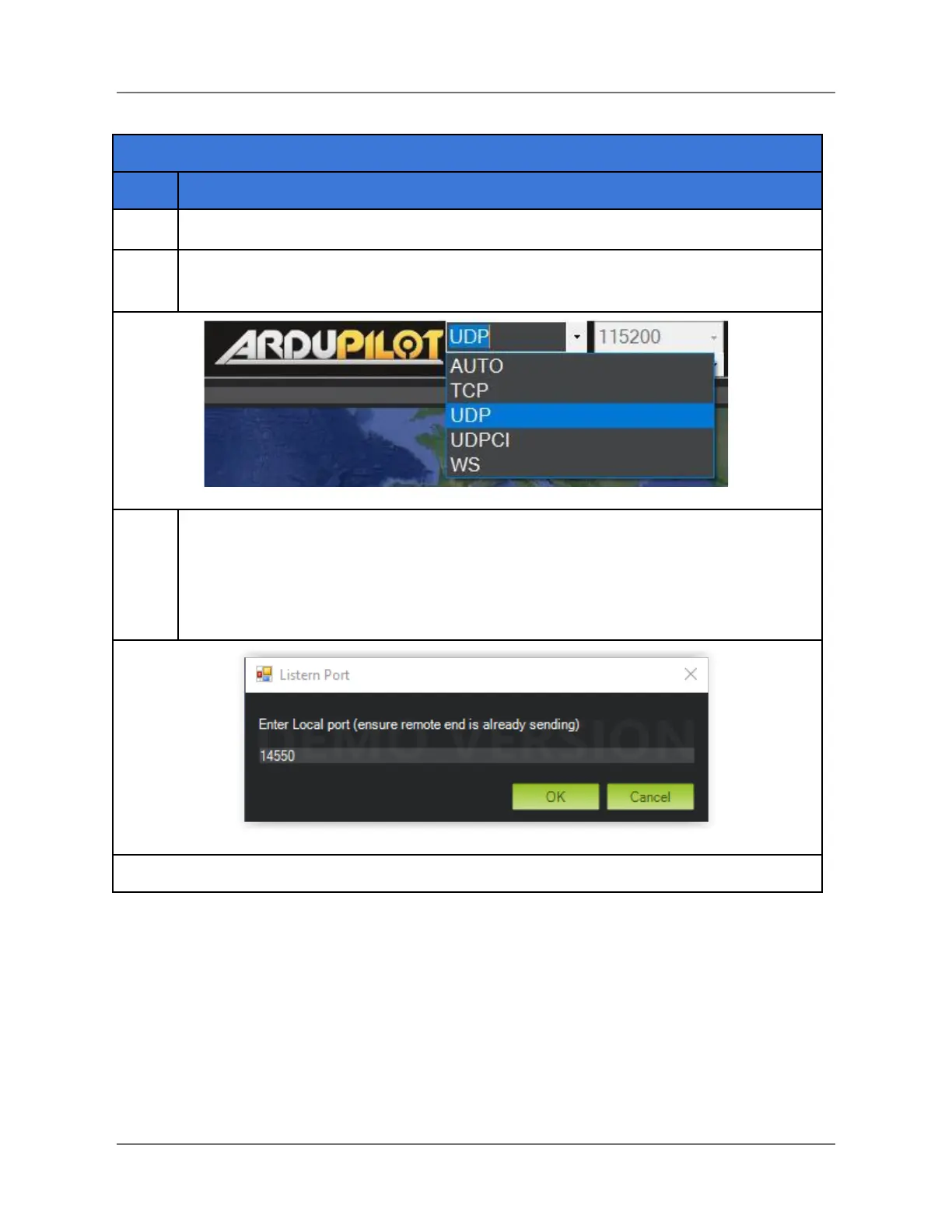 window opens (see below). If necessary, change the port number to 14550, as