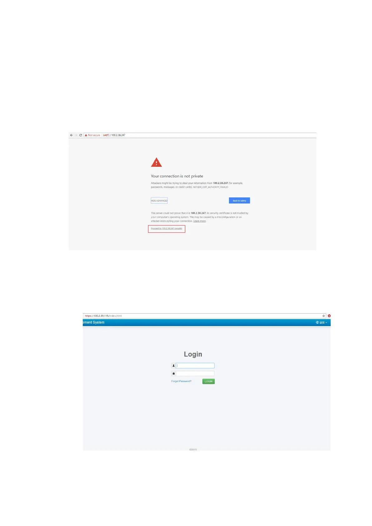 case, trust this screen by clicking Proceed to [the IP address] (unsafe), as