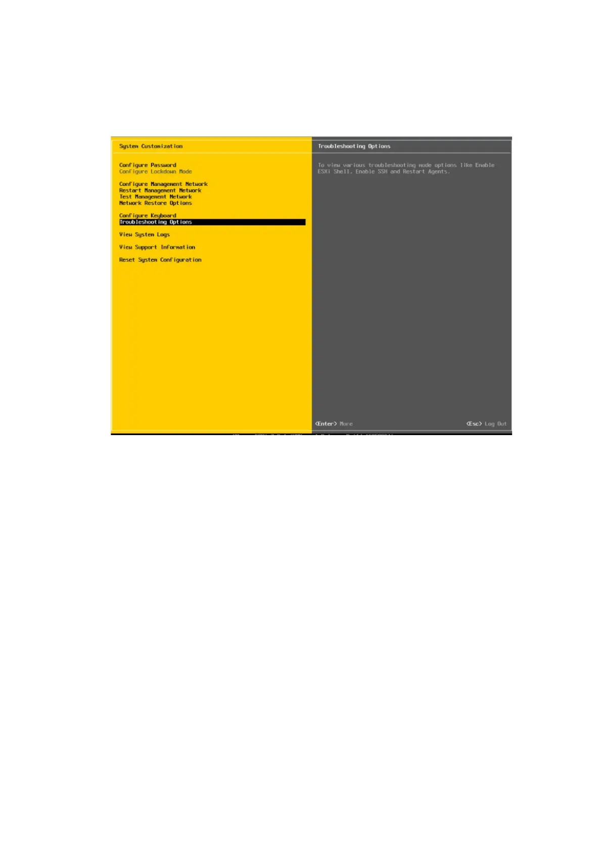 on the right side of the screen. If you press <Enter>, ESXi Shell is Enabled will