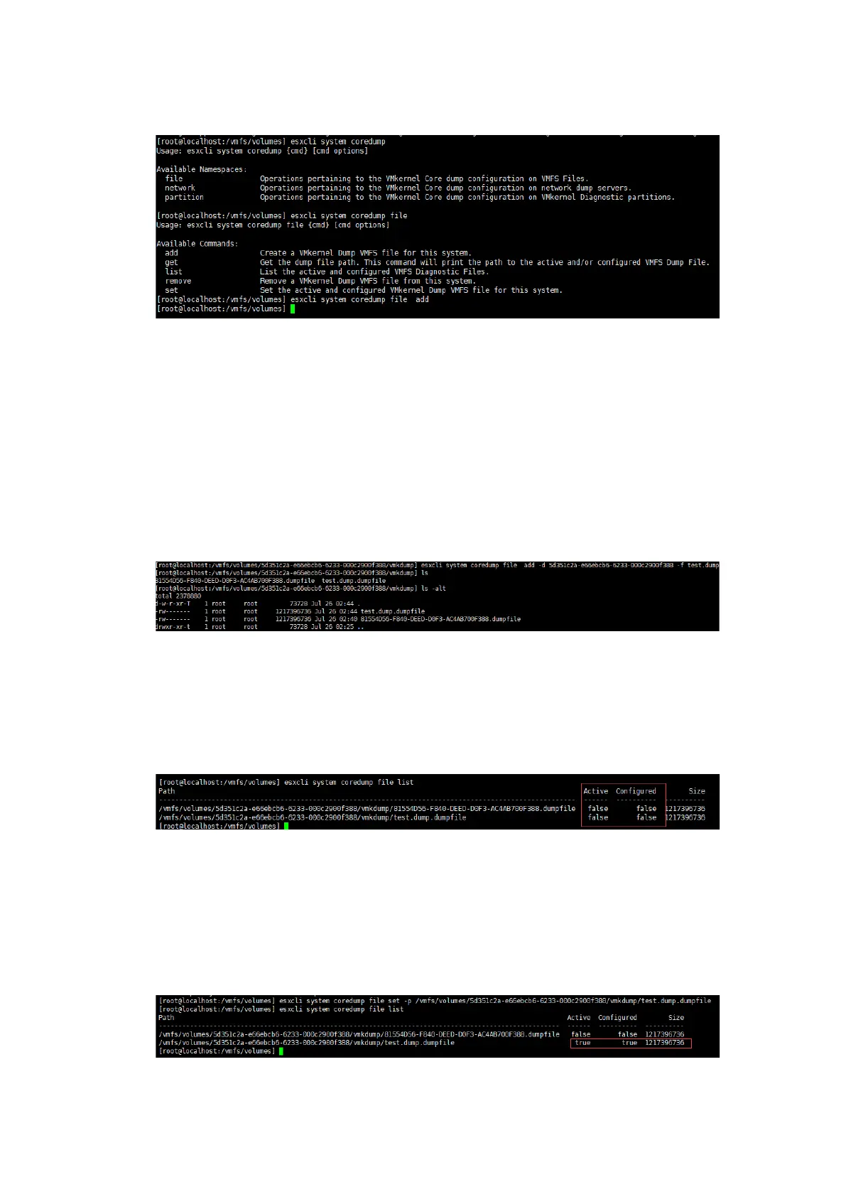 #esxcli system coredump file add -d 5d351c2a-e66ebcb6-6233-000c2900f388 -f