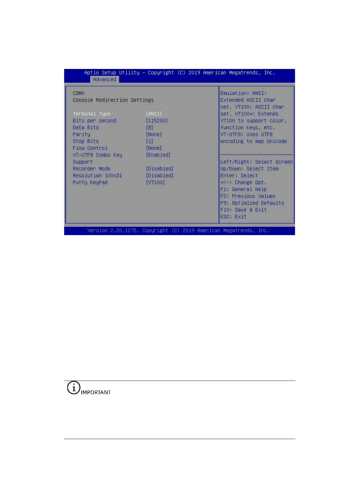 Each server has its own serial console settings, which are configured in the