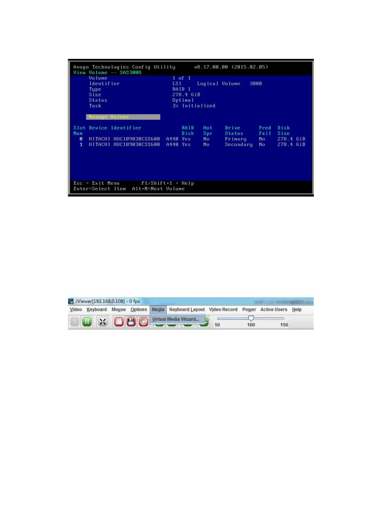 1. On the KVM remote management screen, select Media > Virtual Media Wizard.