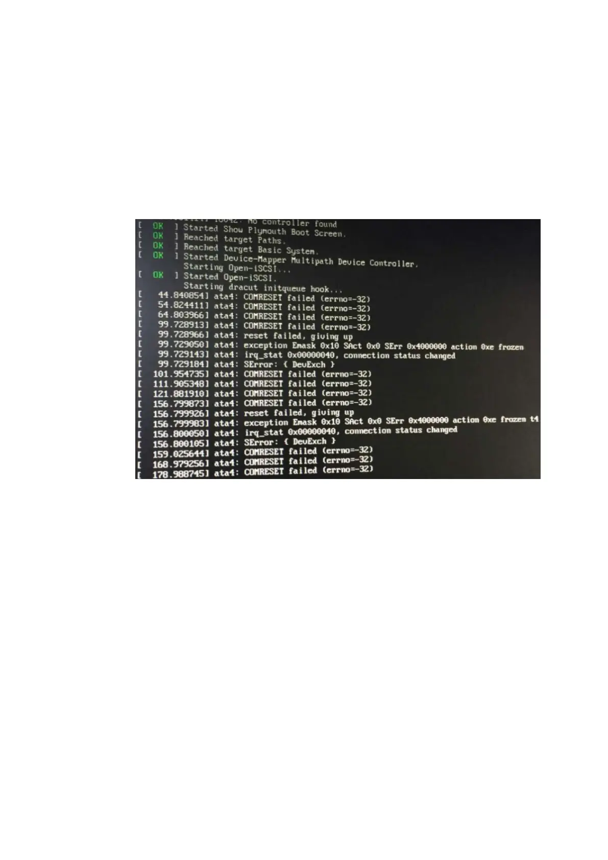 During the RHEL 7.4 OS installation, COMRESET failed (errNO=-32) is reported