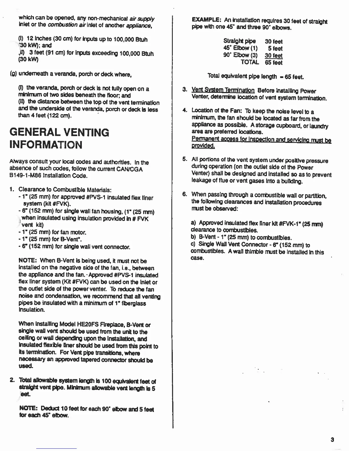 Insta-Flame PVS-1 - GENERAL VENTING INFORMATION; Clearance to Combustible Materials; Total Allowable System Length; Vent System Termination Guidelines