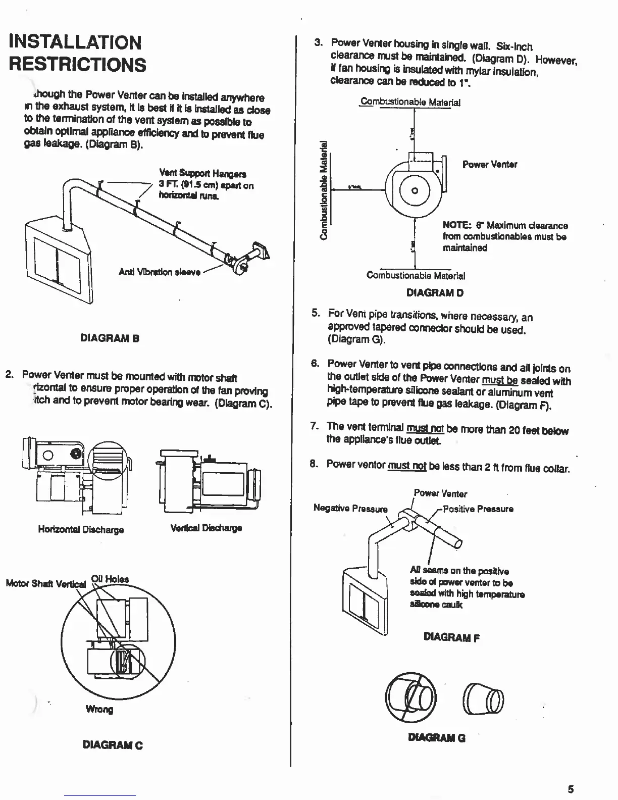 Insta-Flame PVS-1 - INSTALLATION RESTRICTIONS; Vent System Placement and Mounting Restrictions; Housing and Pipe Clearances; Vent Terminal and Flue Collar Distances