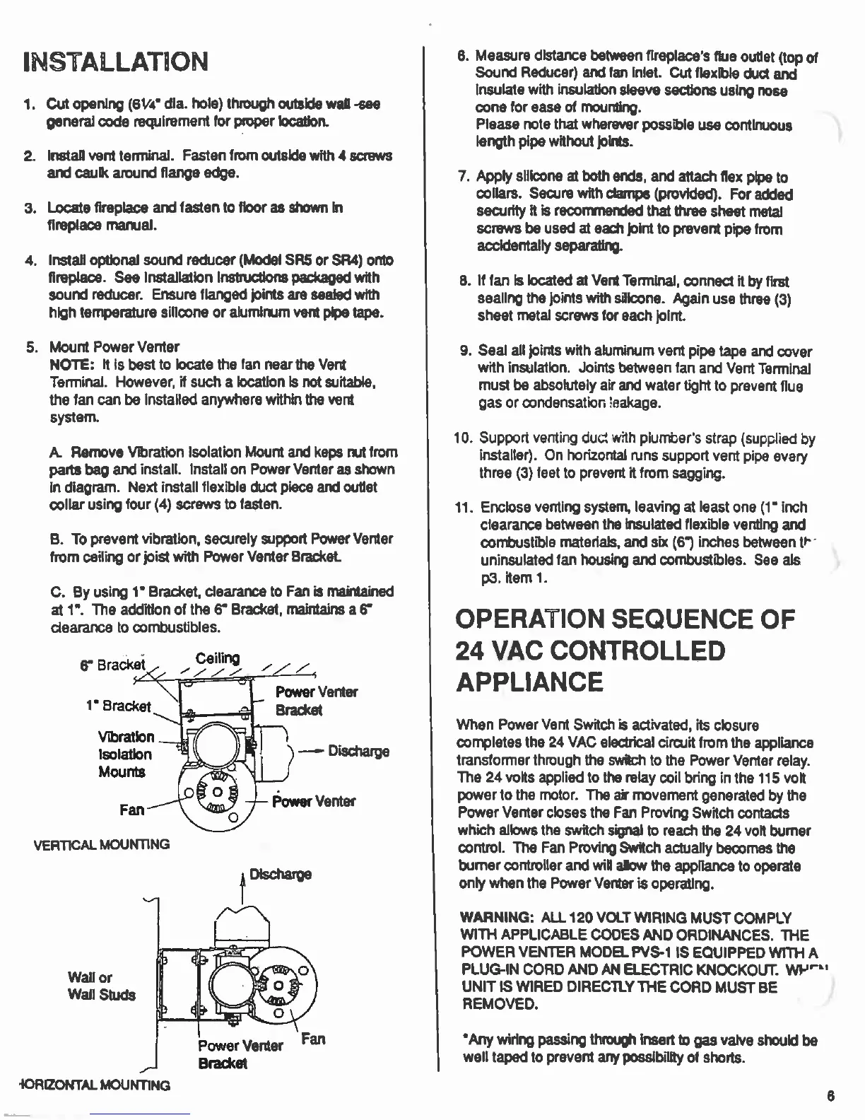 Insta-Flame PVS-1 - INSTALLATION PROCEDURES; Vent Terminal and Fireplace Setup; Power Venter Mounting and Ducting; Venting System Connections and Sealing