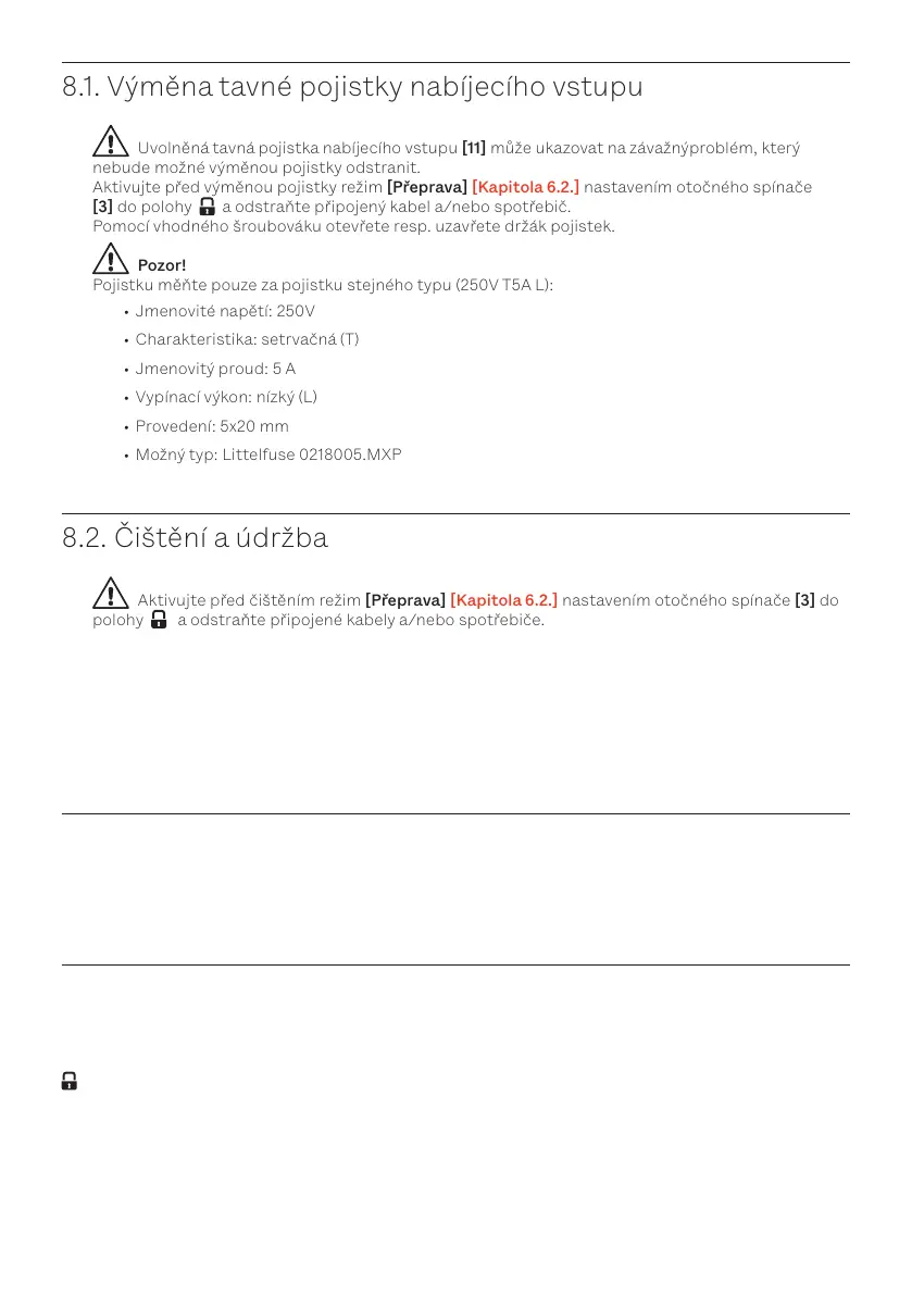 8.1. Výměna tavné pojistky nabíjecího vstupu