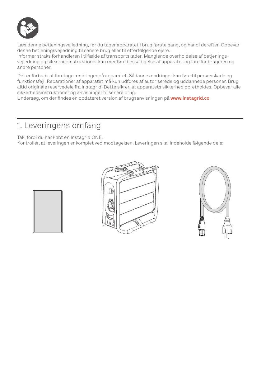 altid originale reservedele fra Instagrid. Dette sikrer, at apparatets sikkerhed opretholdes. Opbevar alle