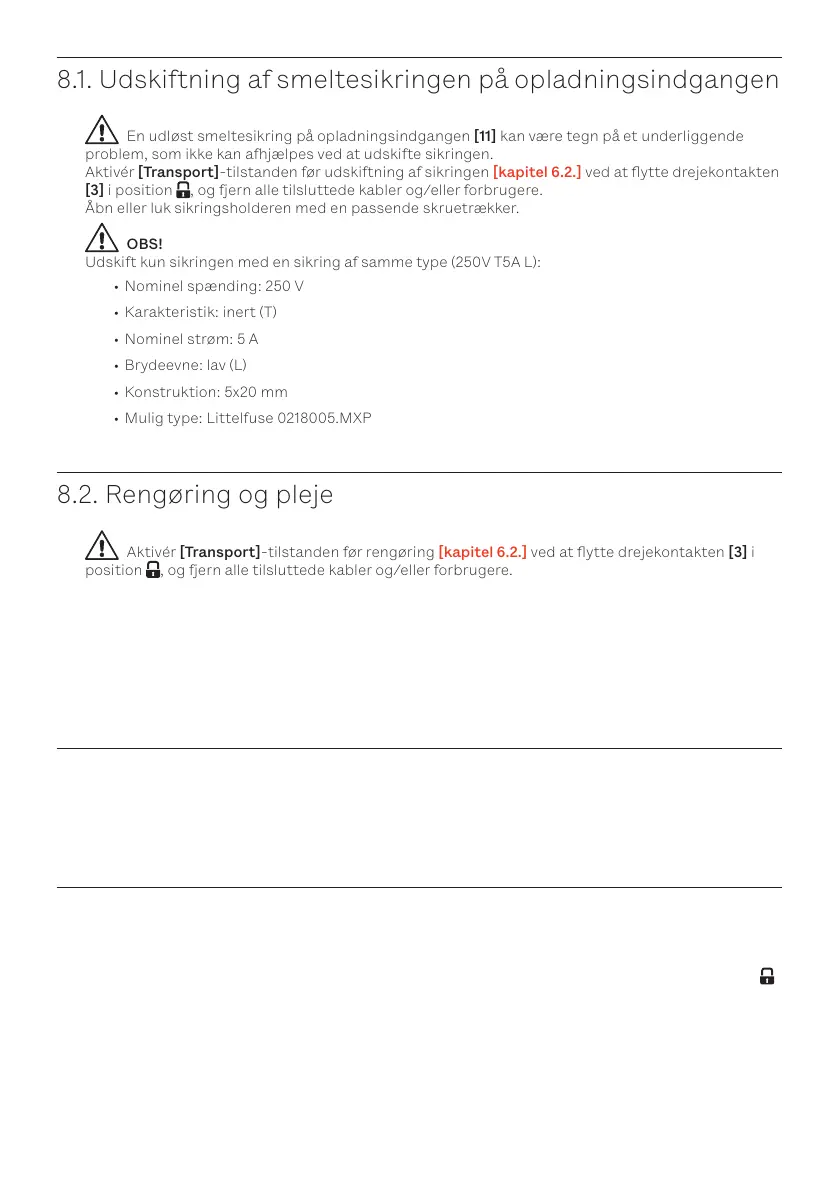 8.1. Udskiftning af smeltesikringen på opladningsindgangen
