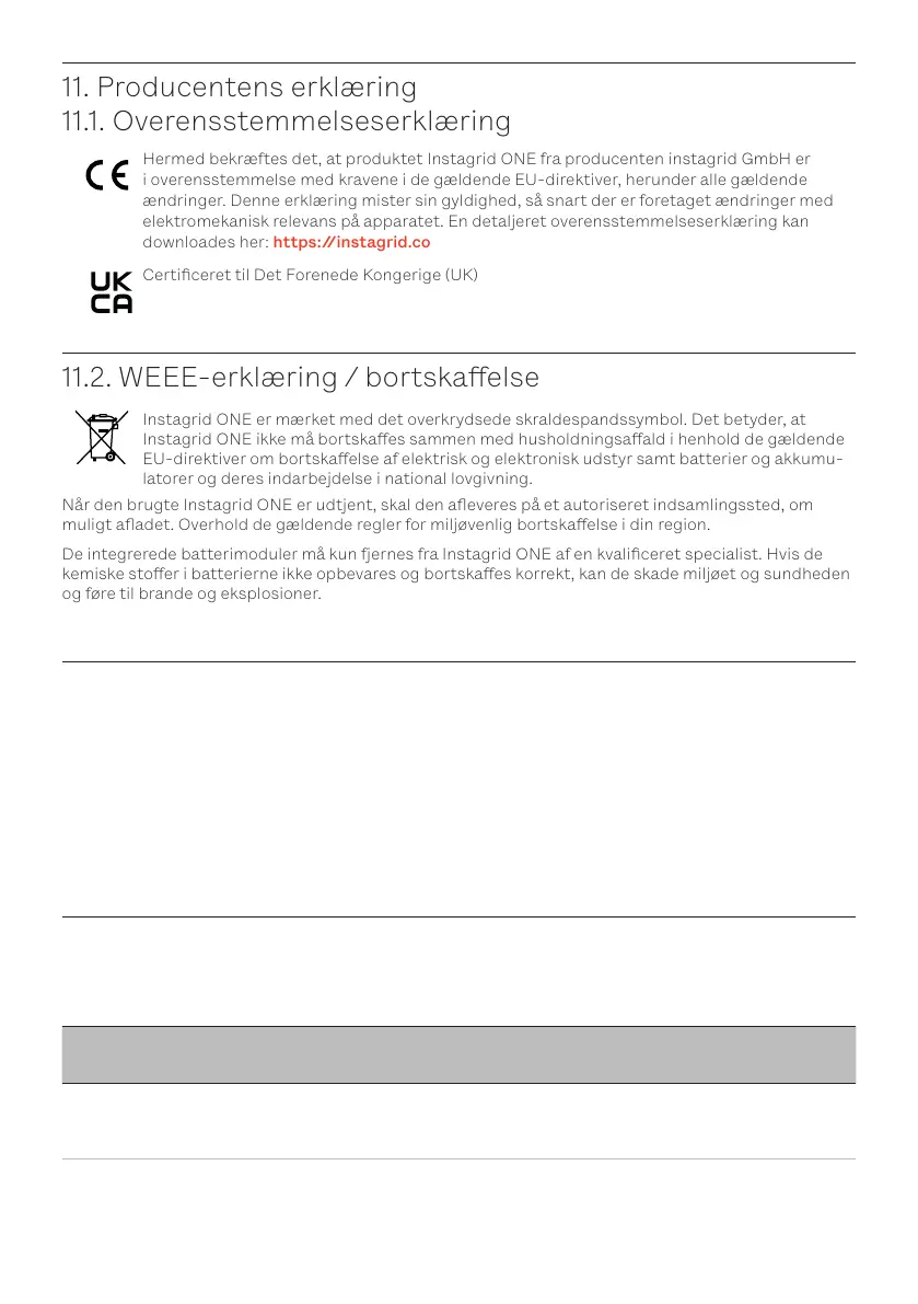 Når den brugte Instagrid ONE er udtjent, skal den aeveres på et autoriseret indsamlingssted, om
