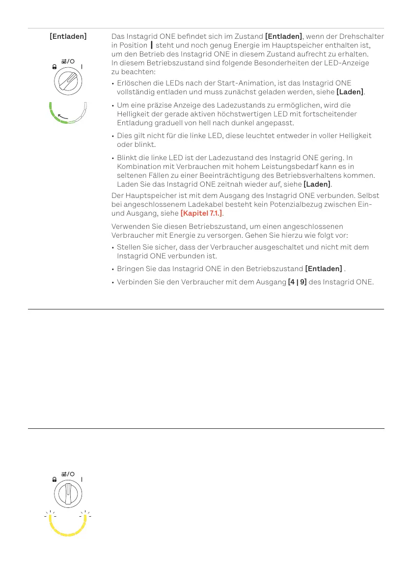 [Entladen] Das Instagrid ONE bendet sich im Zustand [Entladen], wenn der Drehschalter