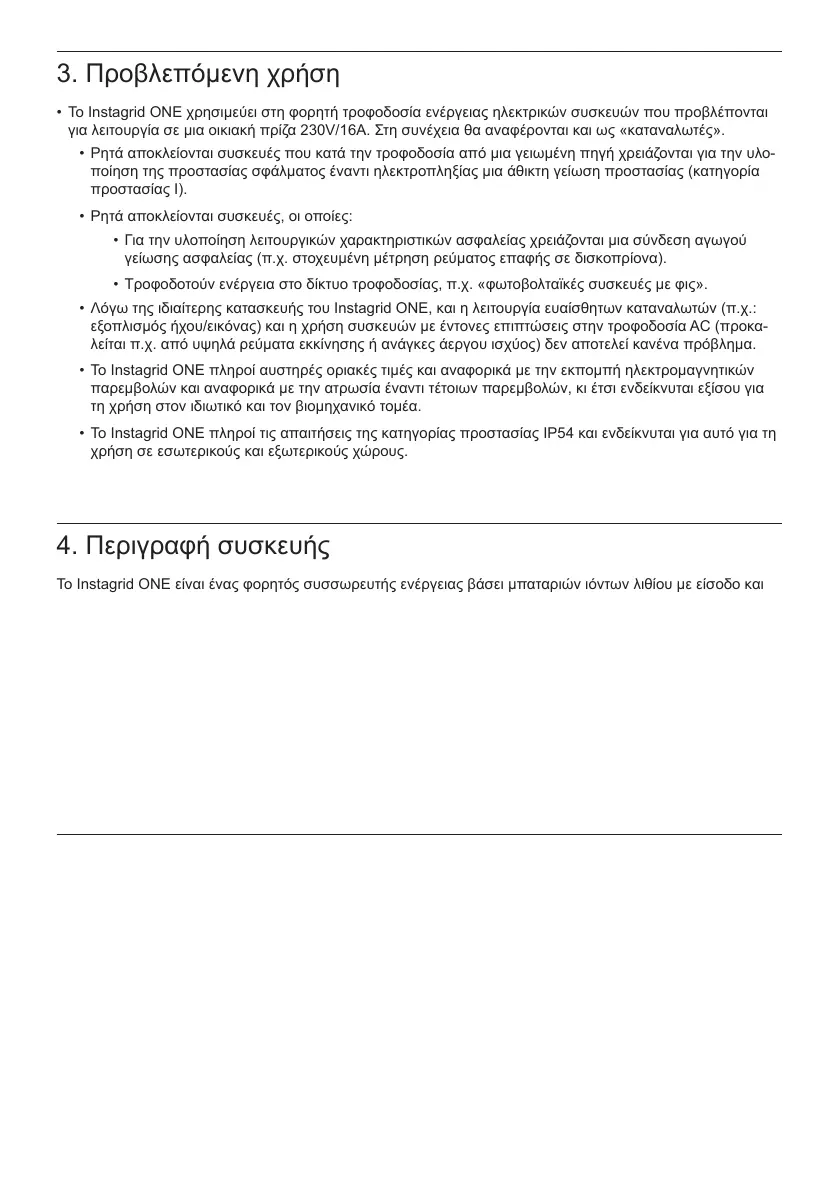 • Λόγω της ιδιαίτερης κατασκευής του Instagrid ONE, και η λειτουργία ευαίσθητων καταναλωτών (π.χ.: