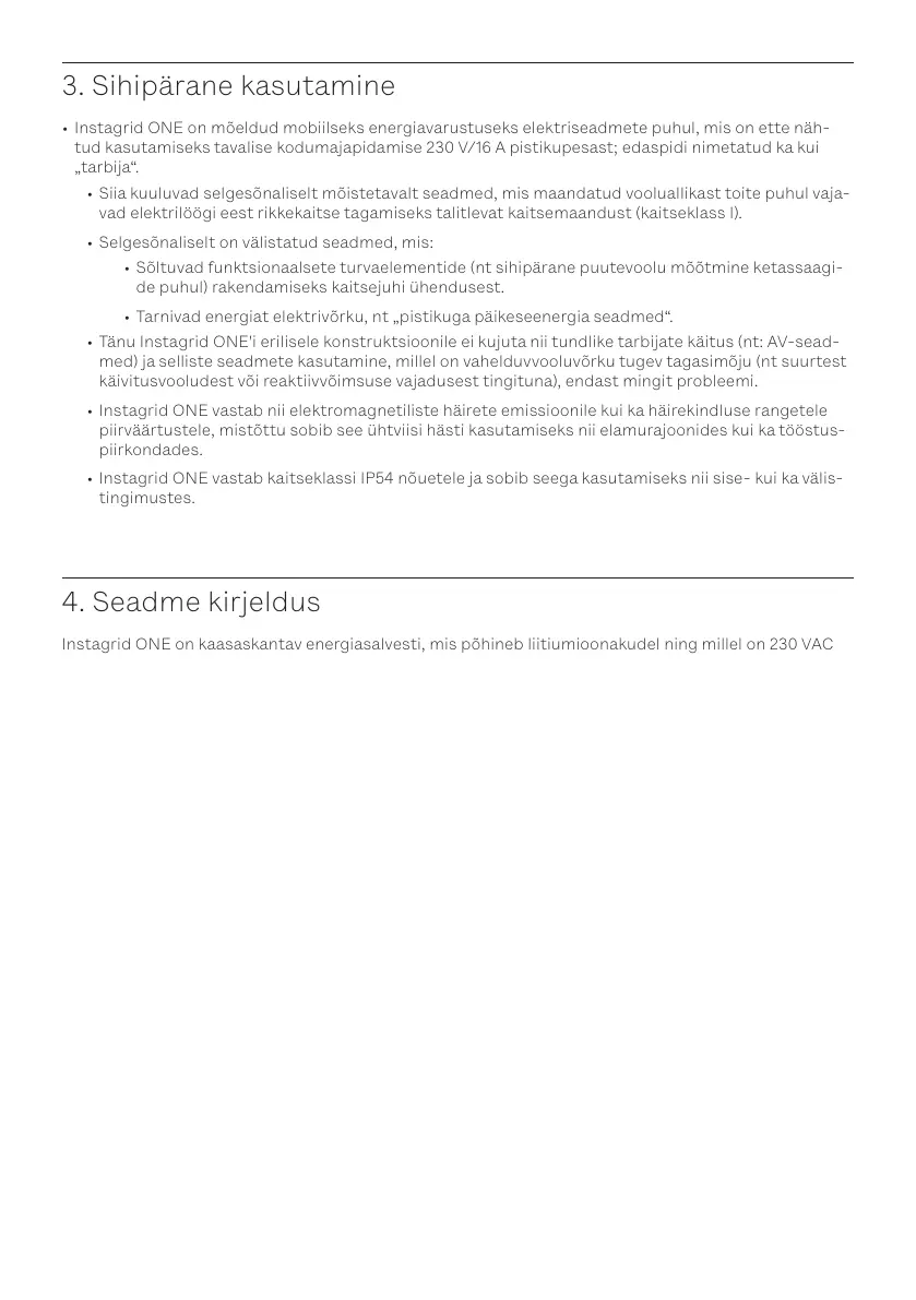 • Instagrid ONE on mõeldud mobiilseks energiavarustuseks elektriseadmete puhul, mis on ette näh-