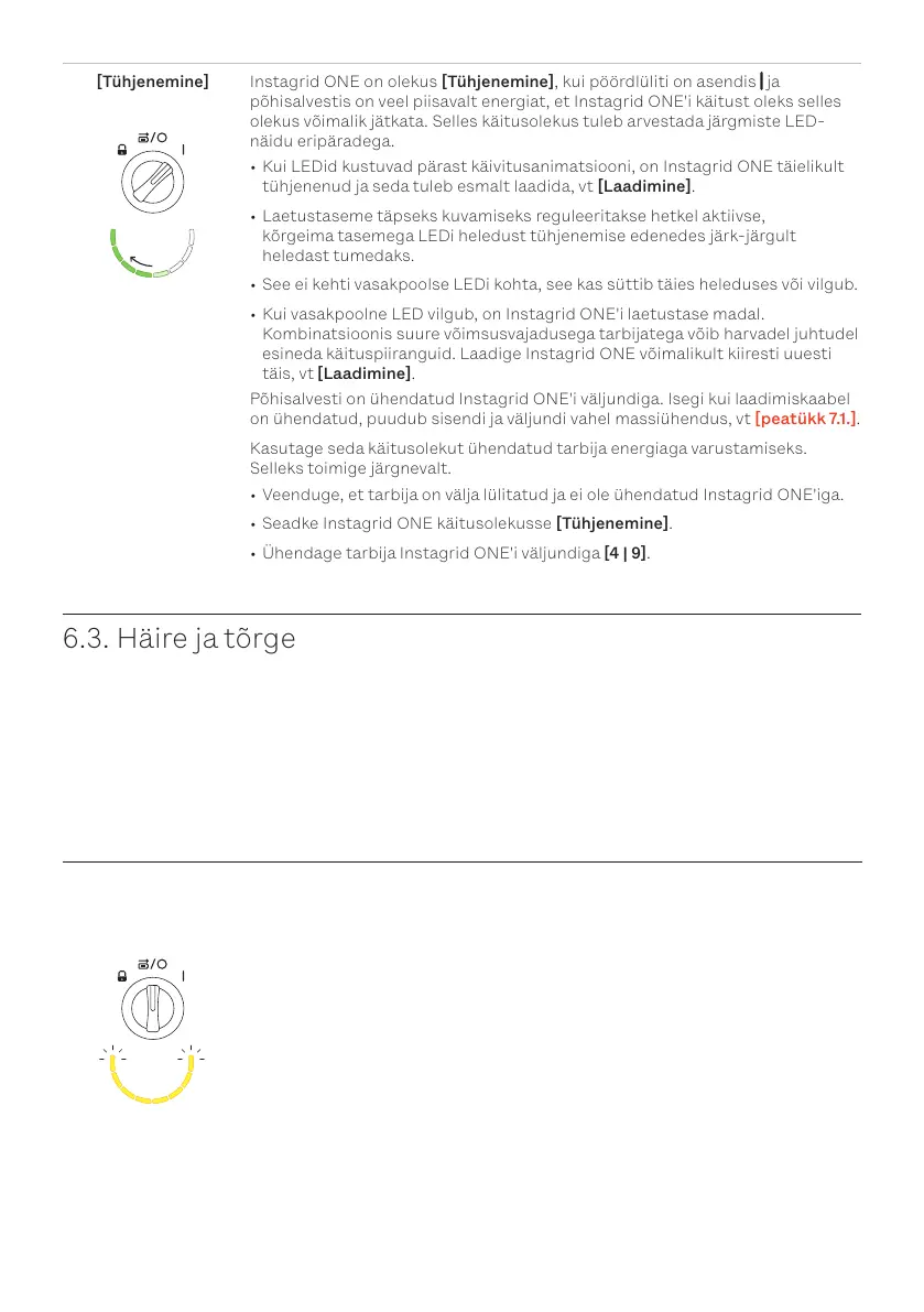 väljutakse Instagrid ONE'i praegusest käitusolekust - sisend [8] ja väljund [4 | 9] on inaktiveeritud,