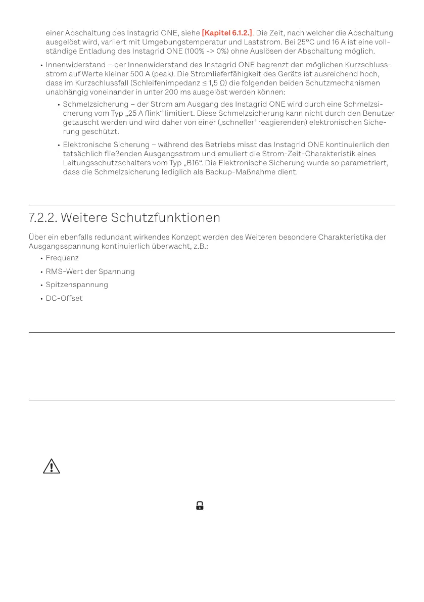 • Schmelzsicherung – der Strom am Ausgang des Instagrid ONE wird durch eine Schmelzsi-