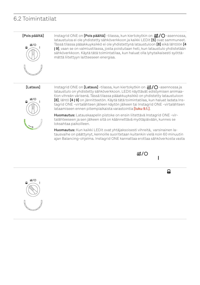 [Lataus] Instagrid ONE on [Lataus] -tilassa, kun kiertokytkin on -asennossa ja