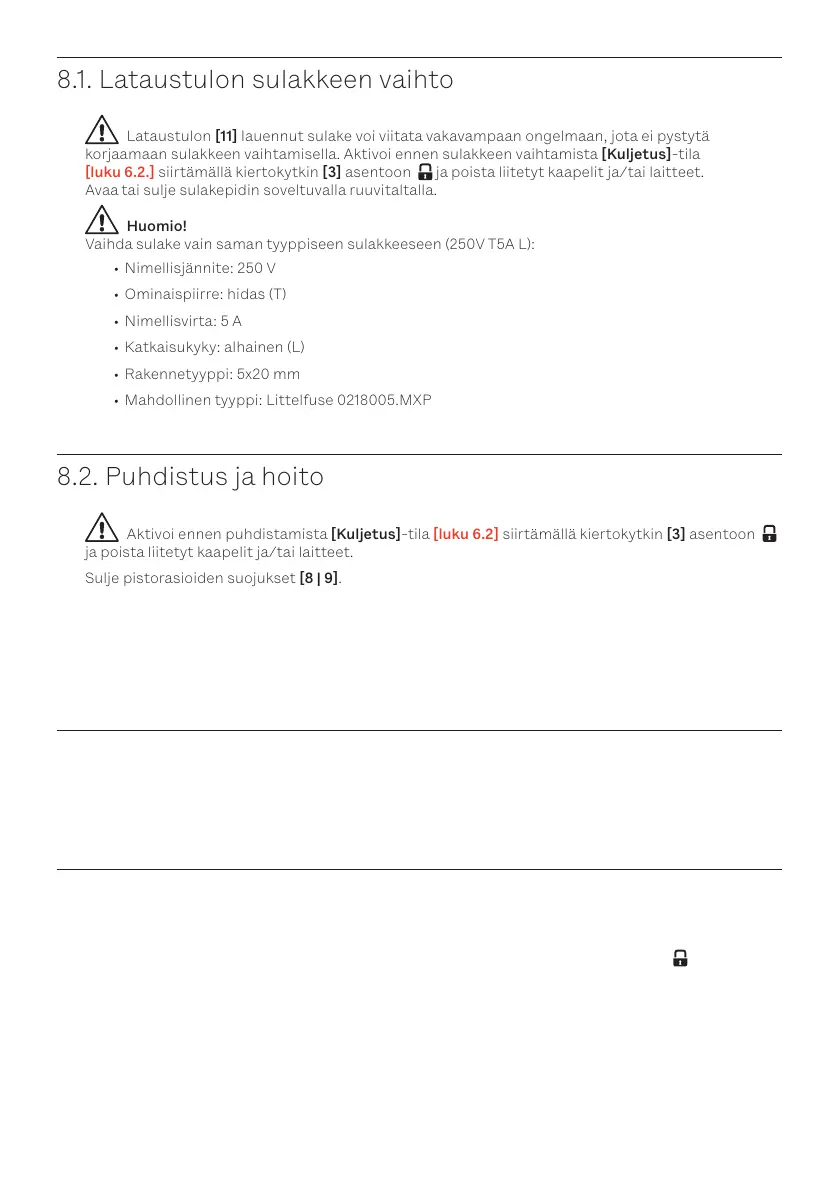 korjaamaan sulakkeen vaihtamisella. Aktivoi ennen sulakkeen vaihtamista [Kuljetus]-tila