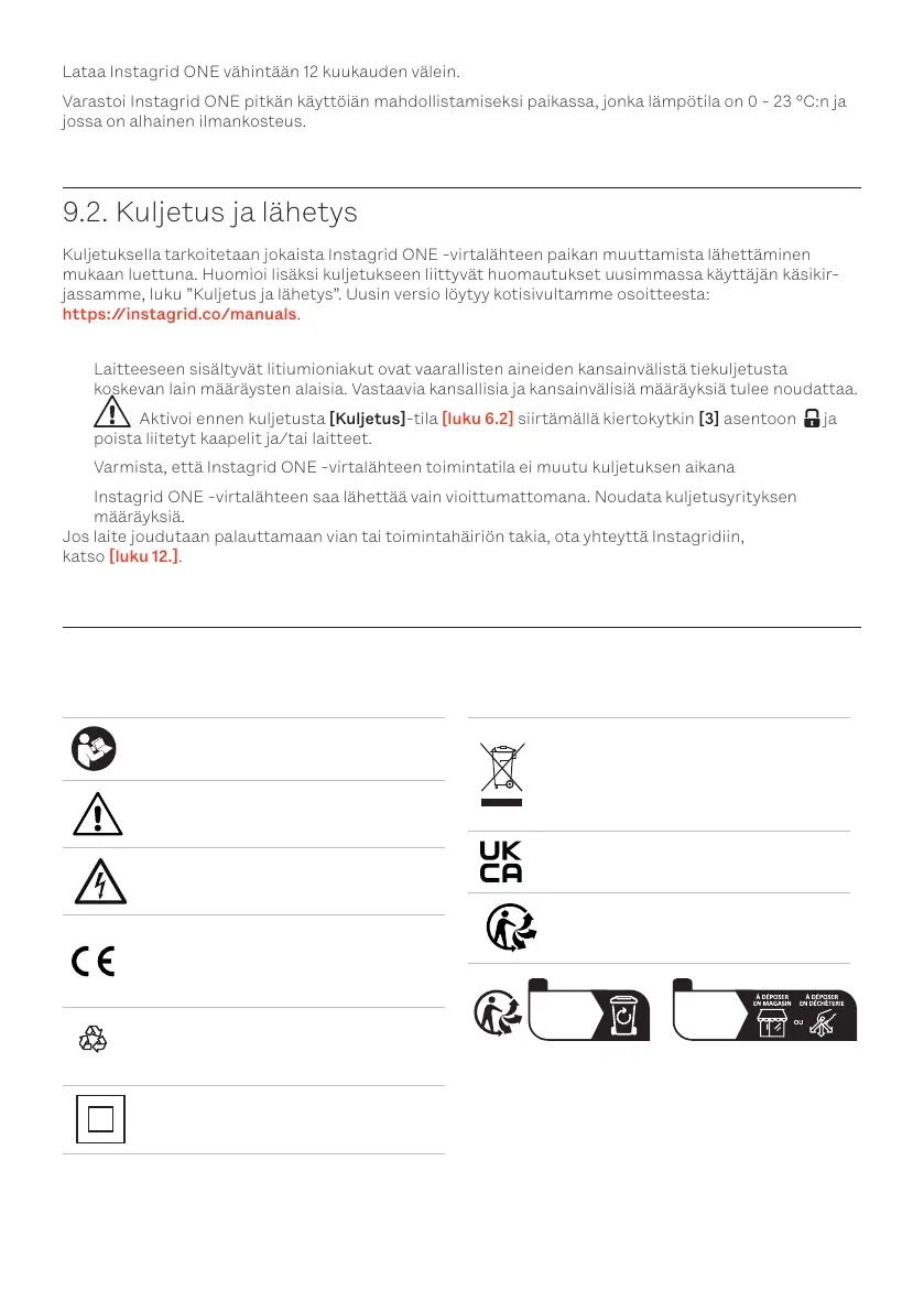 Kuljetuksella tarkoitetaan jokaista Instagrid ONE -virtalähteen paikan muuttamista lähettäminen
