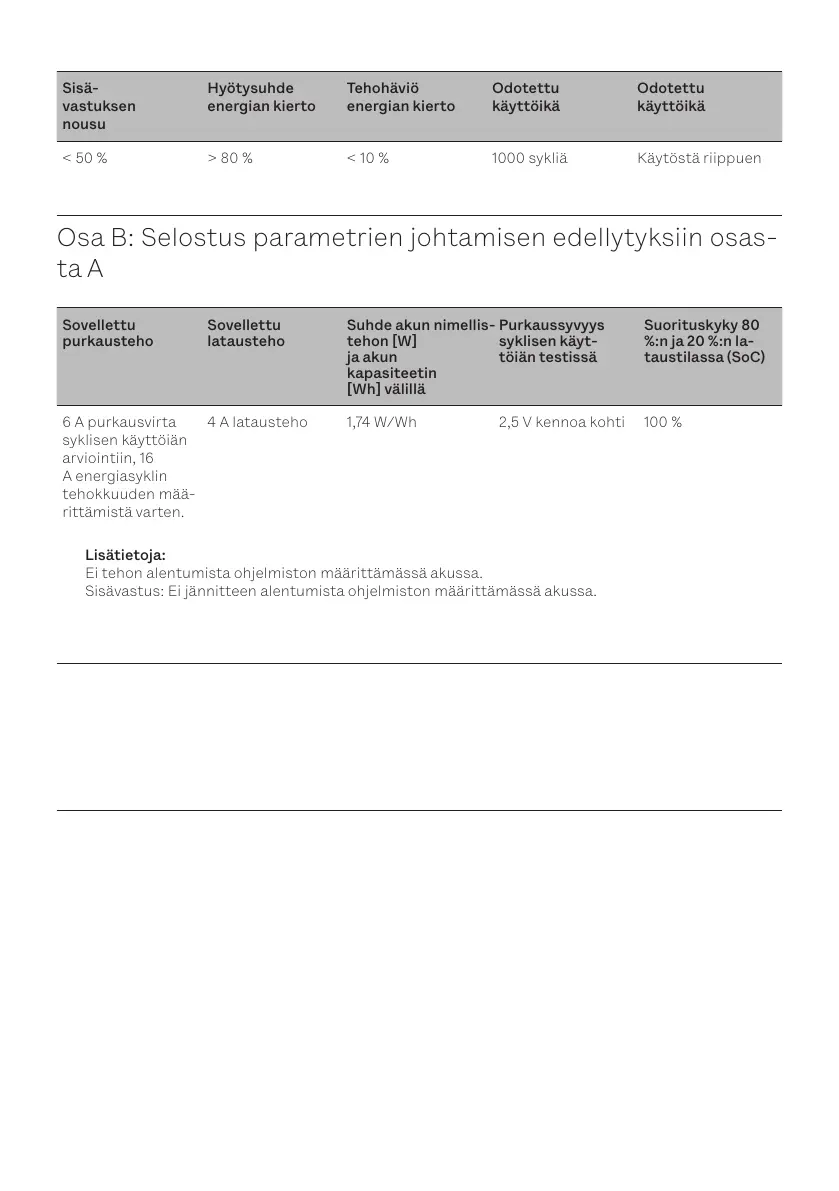 < 50 % > 80 % < 10 % 1000 sykliä Käytöstä riippuen