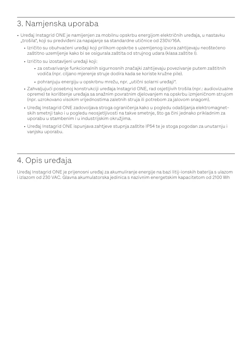 • Uređaj Instagrid ONE je namijenjen za mobilnu opskrbu energijom električnih uređaja, u nastavku