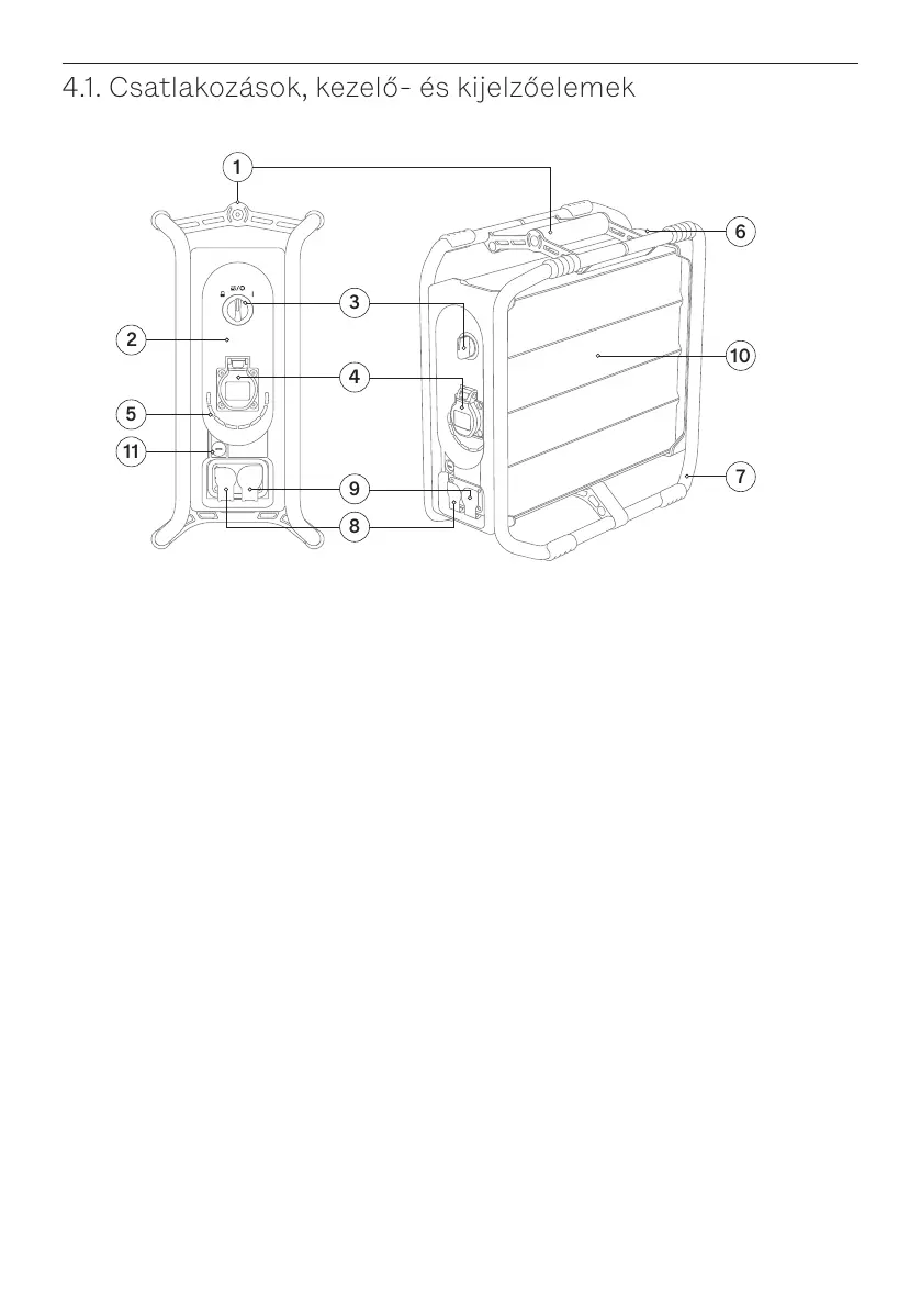 4.1. Csatlakozások, kezelő- és kijelzőelemek
