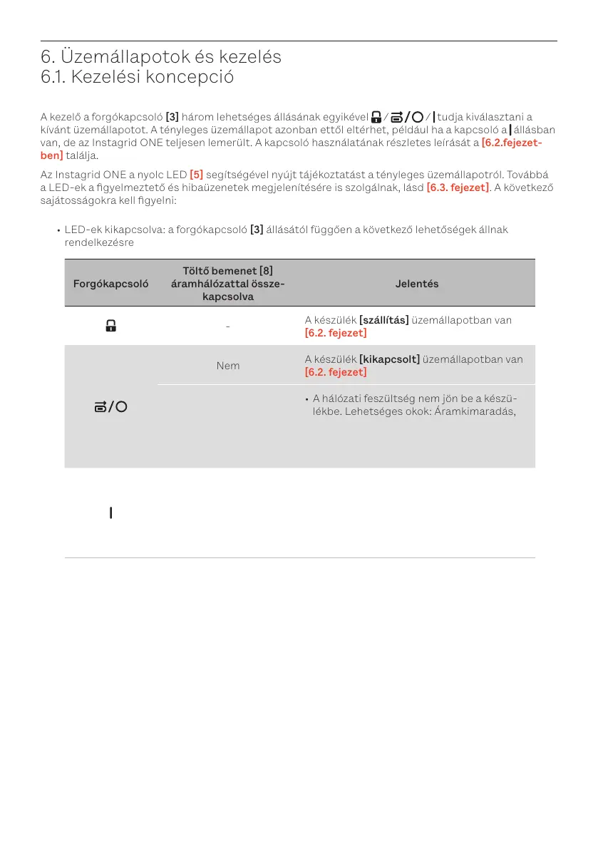 • [Töltés] és [lemerülés] [6.2. fejezet] üzemállapotokban az Instagrid ONE aktuális töltöttségi álla-