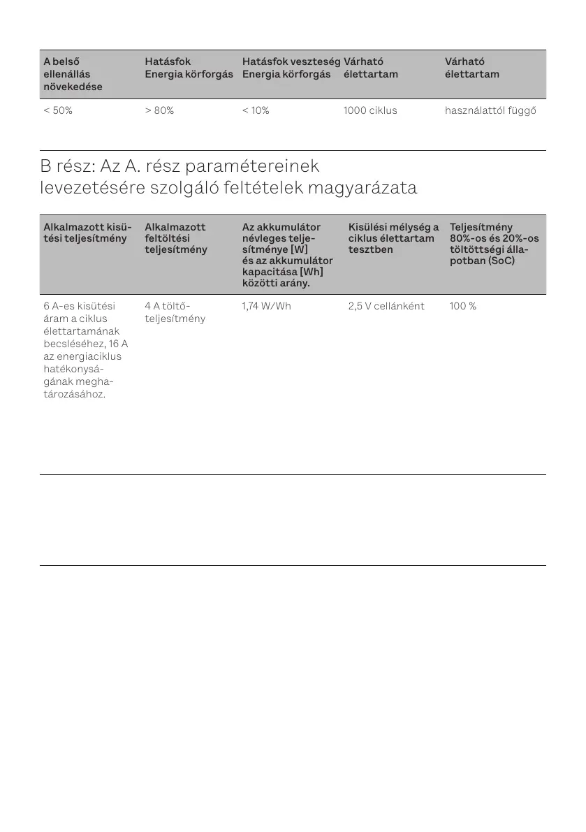 < 50% > 80% < 10% 1000 ciklus használattól függő