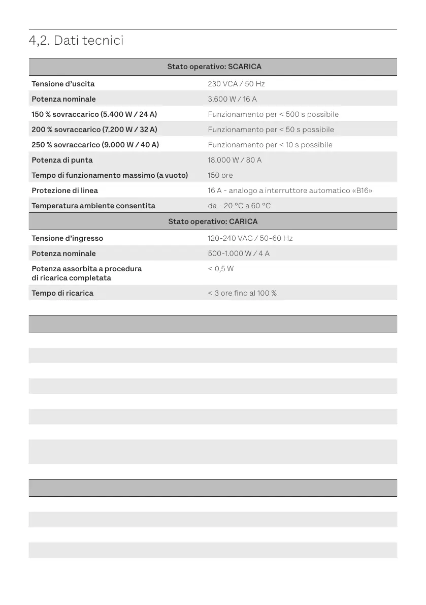 150 % sovraccarico (5.400 W / 24 A) Funzionamento per < 500 s possibile