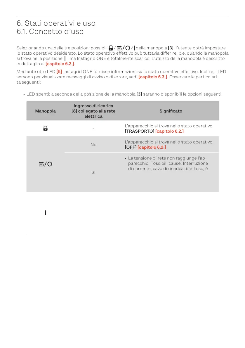 Mediante otto LED [5] Instagrid ONE fornisce informazioni sullo stato operativo eettivo. Inoltre, i LED