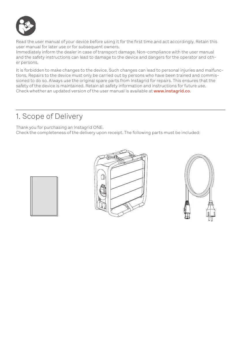 Check whether an updated version of the user manual is available at www.instagrid.co.