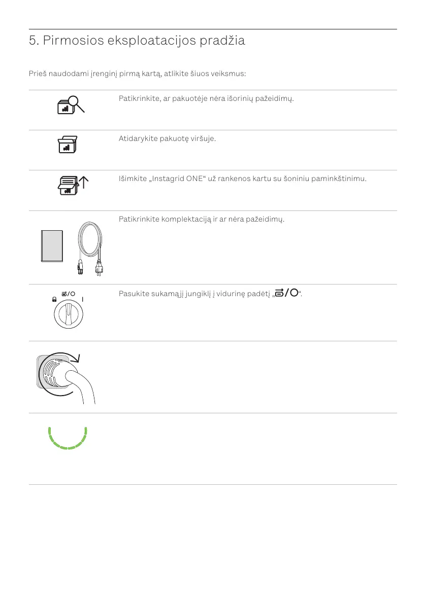 Prijunkite maitinimo kabelį prie „Instagrid ONE“ ir elektros srovės tinklo. Pa-