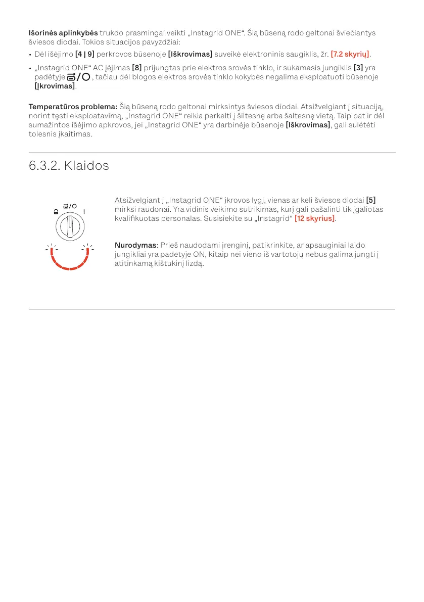 norint tęsti eksploatavimą, „Instagrid ONE“ reikia perkelti į šiltesnę arba šaltesnę vietą. Taip pat ir dėl