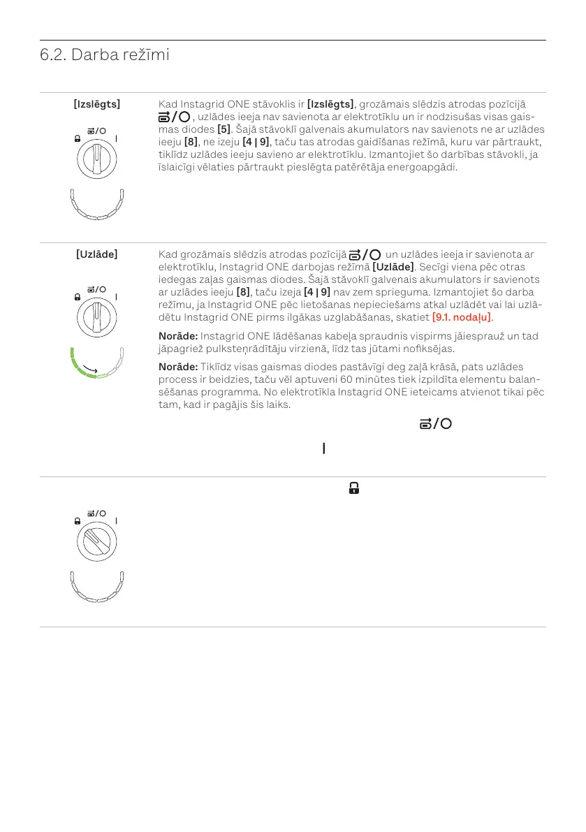 režīmu, ja Instagrid ONE pēc lietošanas nepieciešams atkal uzlādēt vai lai uzlā-