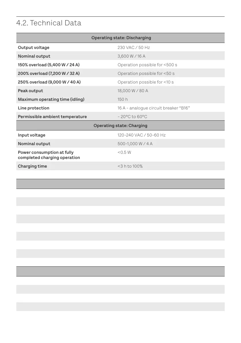 150% overload (5,400 W / 24 A) Operation possible for <500 s