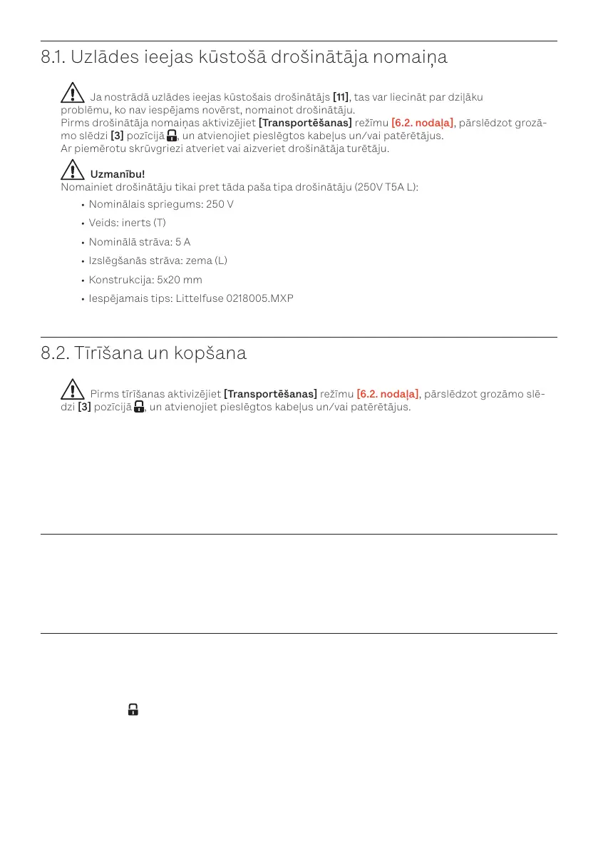 8.1. Uzlādes ieejas kūstošā drošinātāja nomaiņa