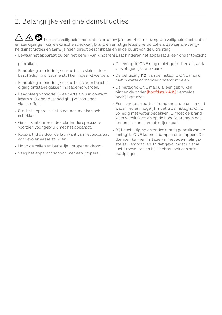 • De Instagrid ONE mag u niet gebruiken als werk-