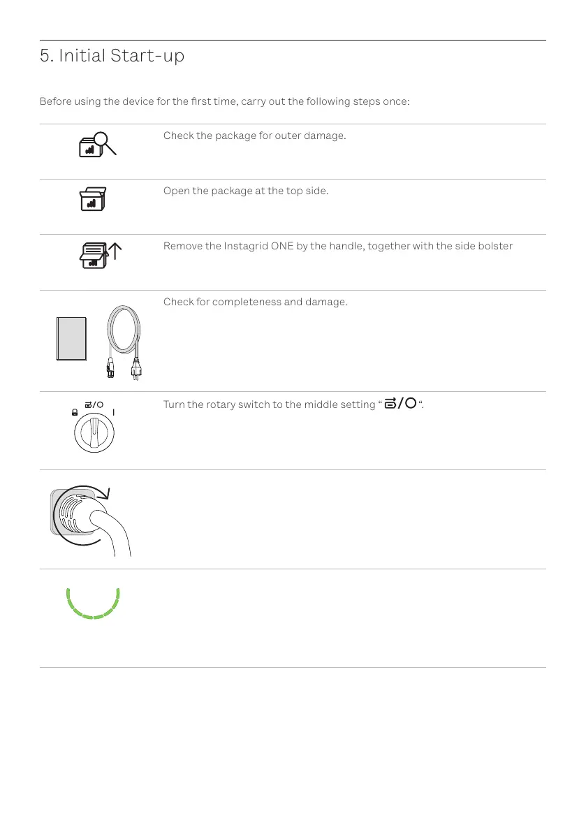 Connect the mains cable with the Instagrid ONE and the mains supply. Wait
