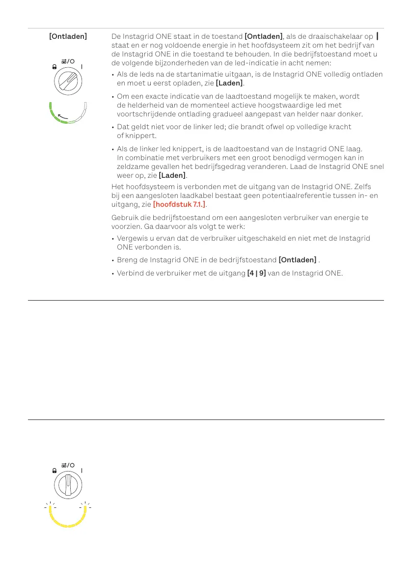 In functie van de laadtoestand van de Instagrid ONE branden of knipperen een