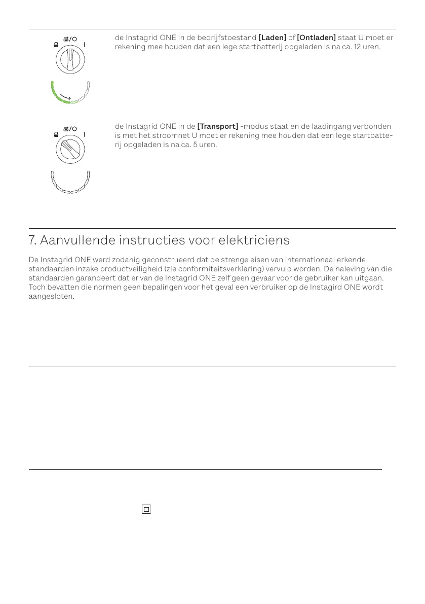 In de bedrijfstoestand [Laden] beantwoordt de Instagrid ONE aan de eisen aan een elektrische appa-