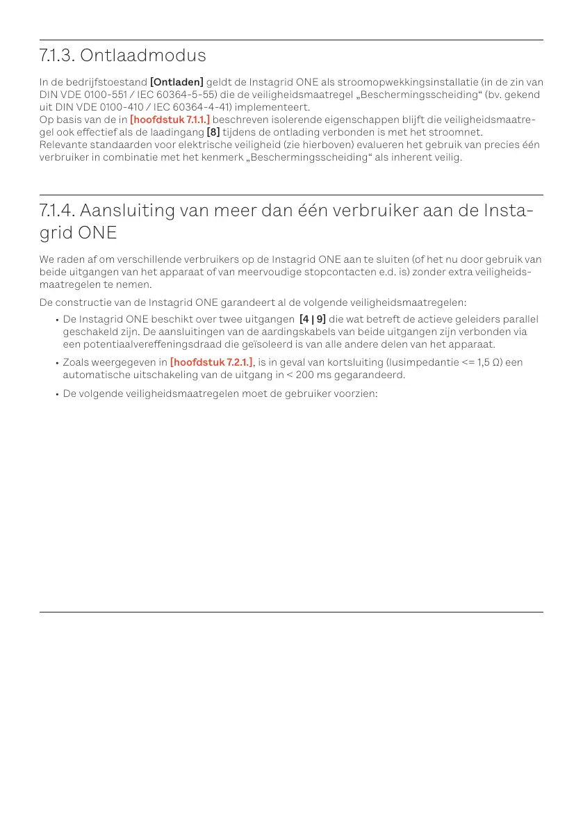 De uitgang van de Instagrid ONE is tegen overbelasting beschermd door meerdere, onafhankelijk over-