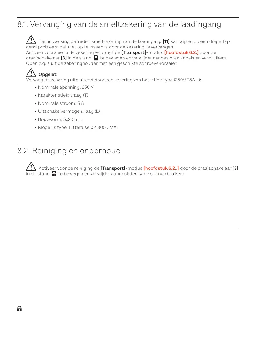 Activeer vooraleer u de zekering vervangt de [Transport]-modus [hoofdstuk 6.2.] door de