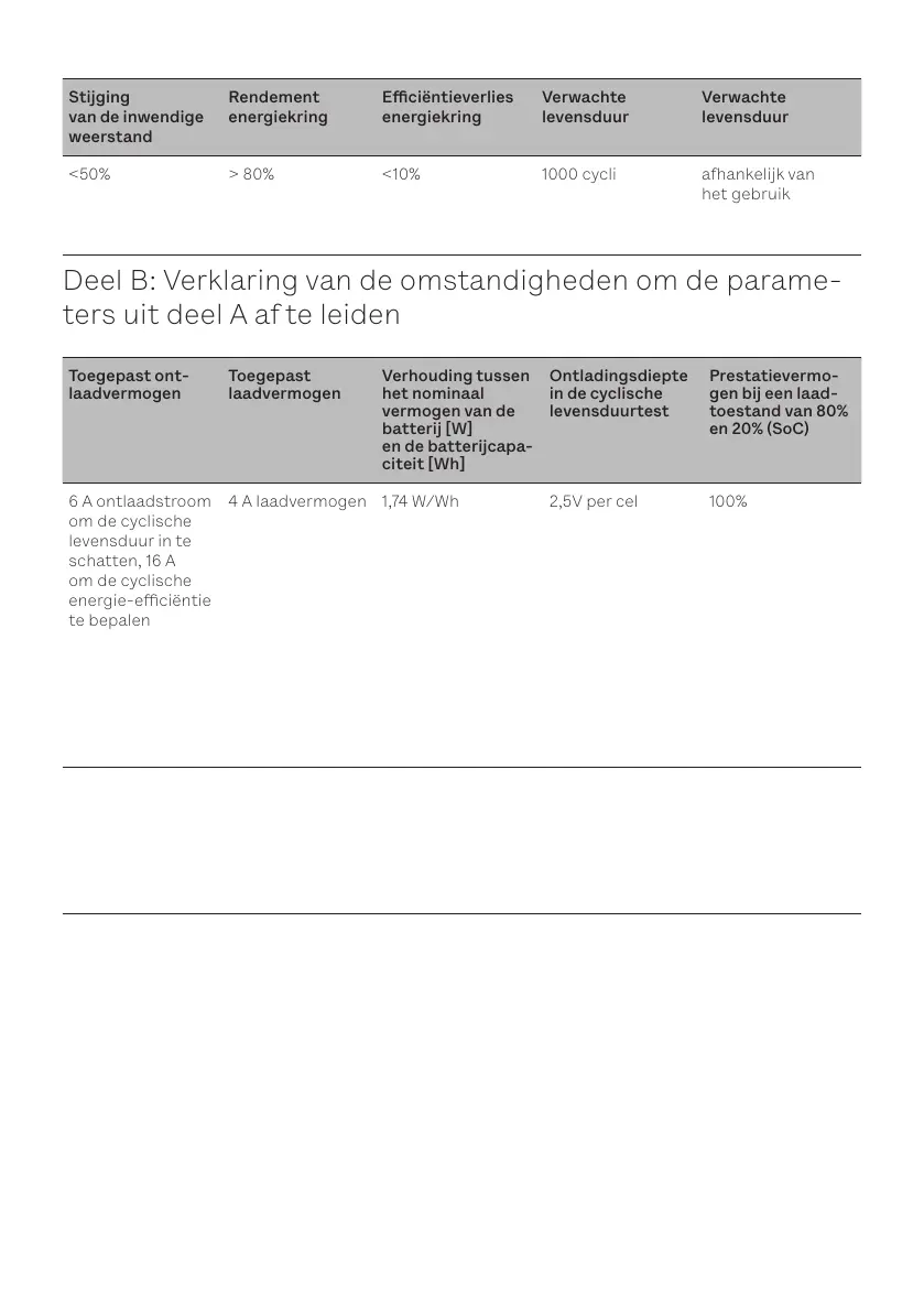 <50% > 80% <10% 1000 cycli afhankelijk van