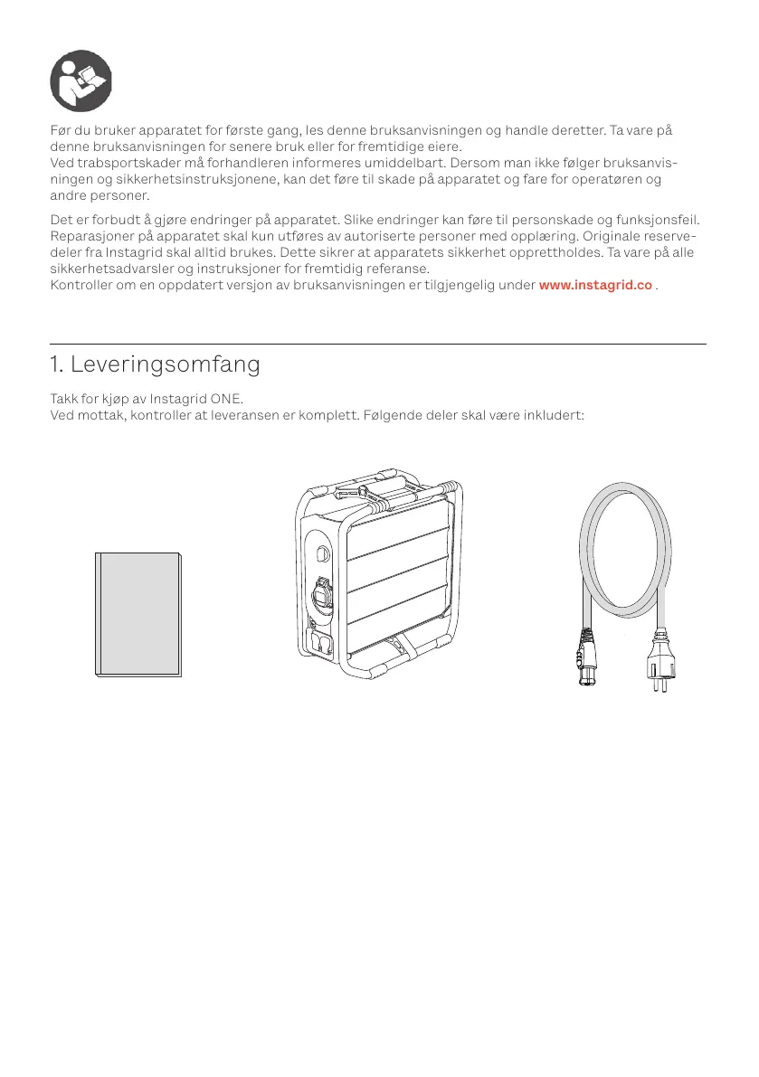 deler fra Instagrid skal alltid brukes. Dette sikrer at apparatets sikkerhet opprettholdes. Ta vare på alle