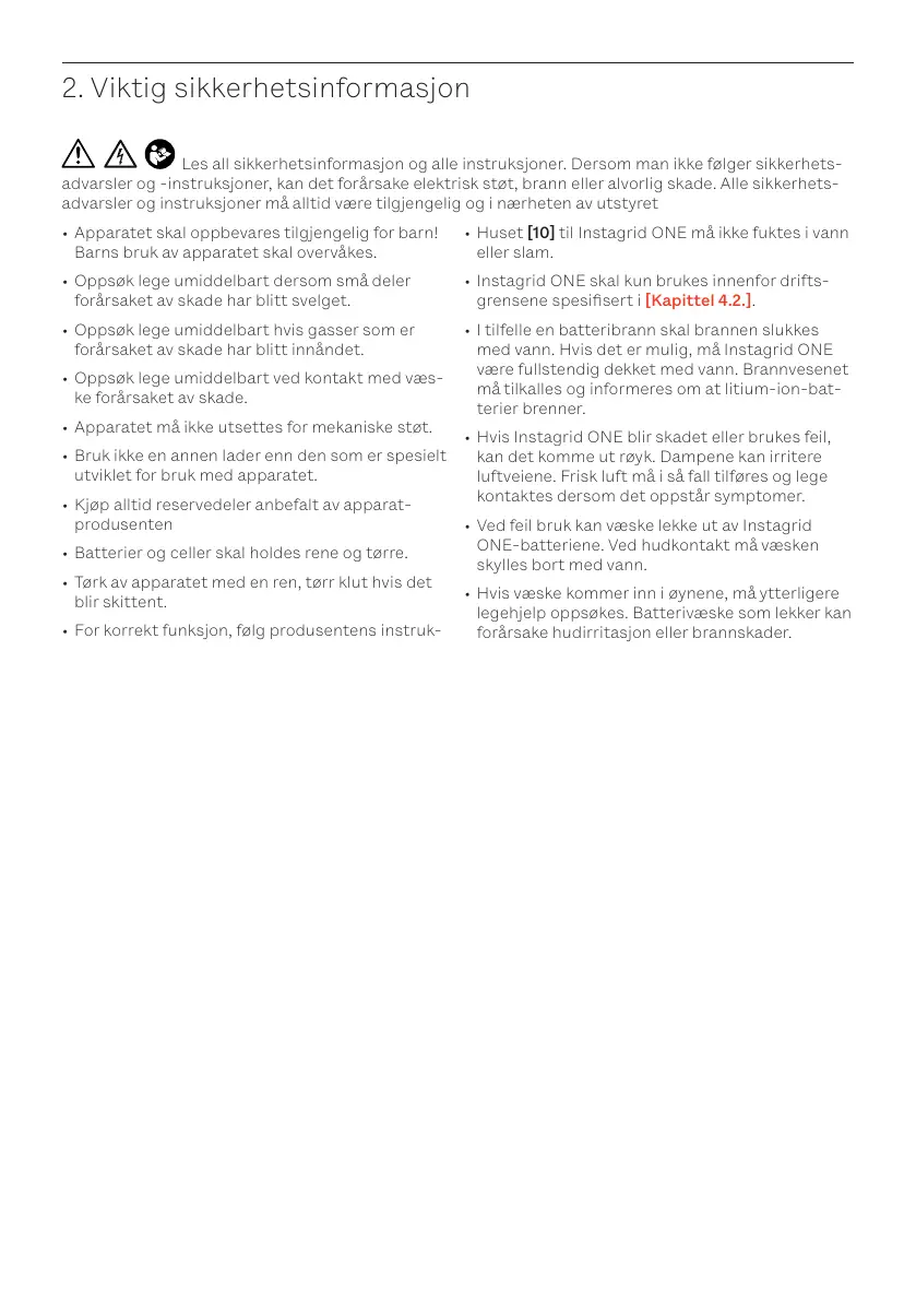 • Instagrid ONE skal kun brukes innenfor drifts-