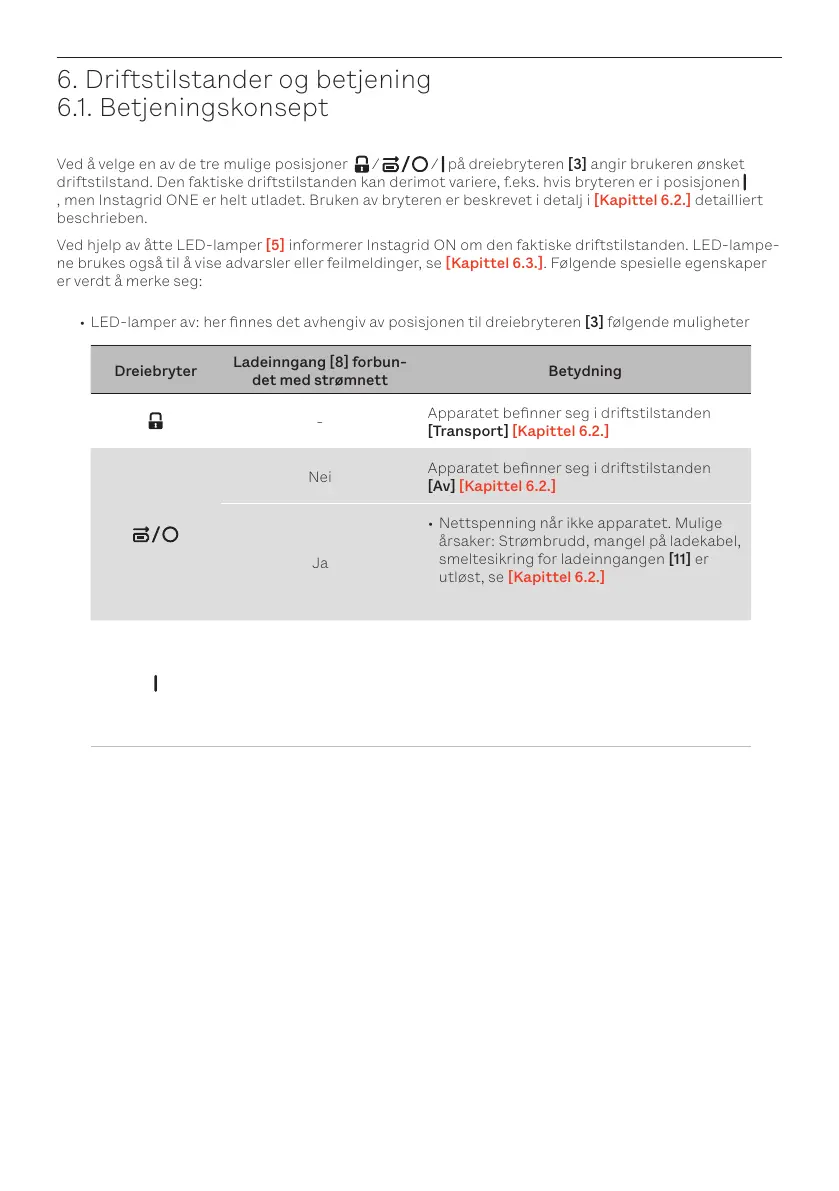 , men Instagrid ONE er helt utladet. Bruken av bryteren er beskrevet i detalj i [Kapittel 6.2.] detailliert
