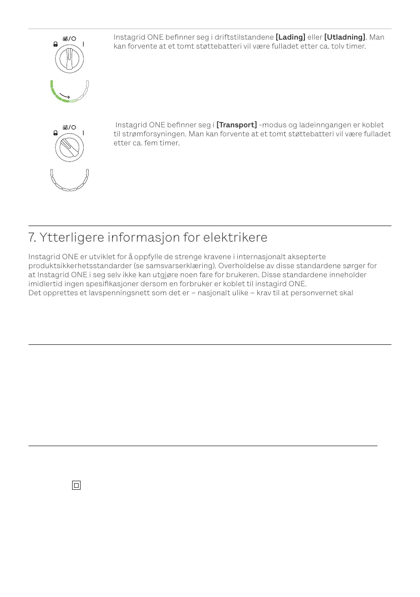 I driftstilstanden [Lading] oppfyller Instagrid ONE oppfyller kravene til et elektrisk apparat i beskyttel-