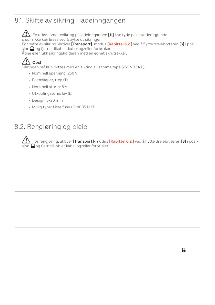 Før bytte av sikring, aktiver [Transport]-modus [Kapittel 6.2.] ved å ytte dreiebryteren [3] i posi-