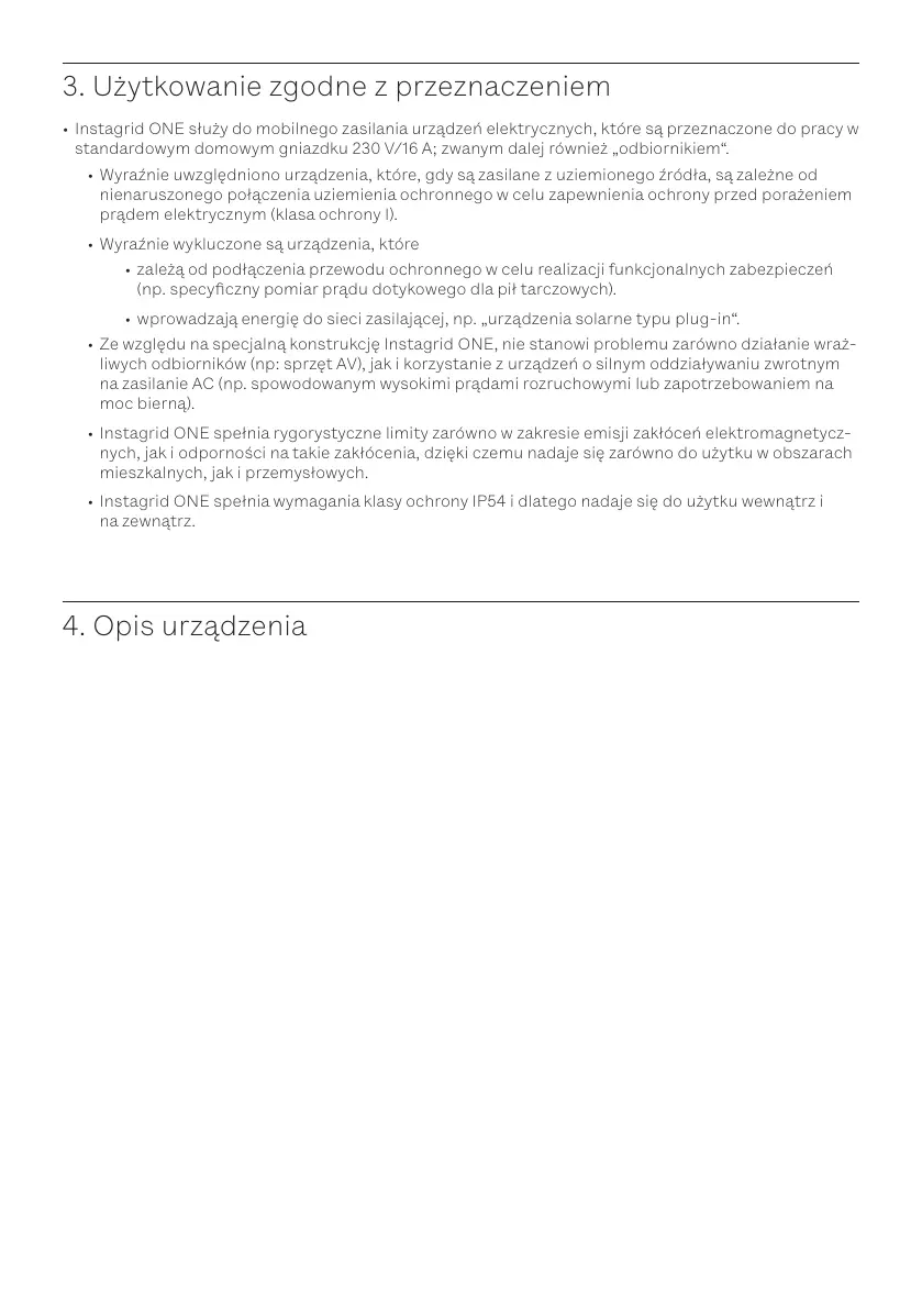 • Instagrid ONE służy do mobilnego zasilania urządzeń elektrycznych, które są przeznaczone do pracy w