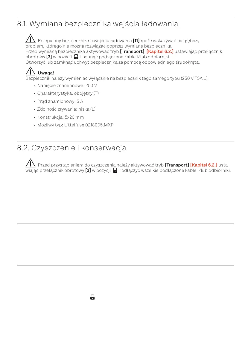 8.1. Wymiana bezpiecznika wejścia ładowania